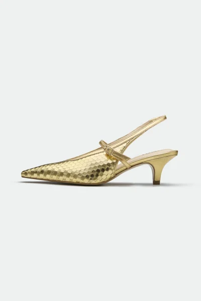 Quick View₹8,290₹6,632 MRP Inclusive Of All TaxesThe Blackpool slingback captures attention with its radiant leather with unique pattern.Its 10mm thin, dual straps cross delicately over the foot, adding a touch of modern geometry. The mid-heel provides a comfortable lift, making it perfect for both daytime elegance and evening glamour. A slender ankle strap with a buckle…