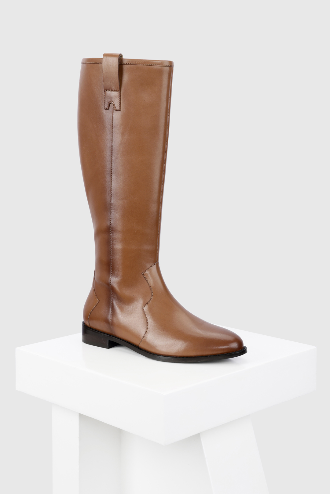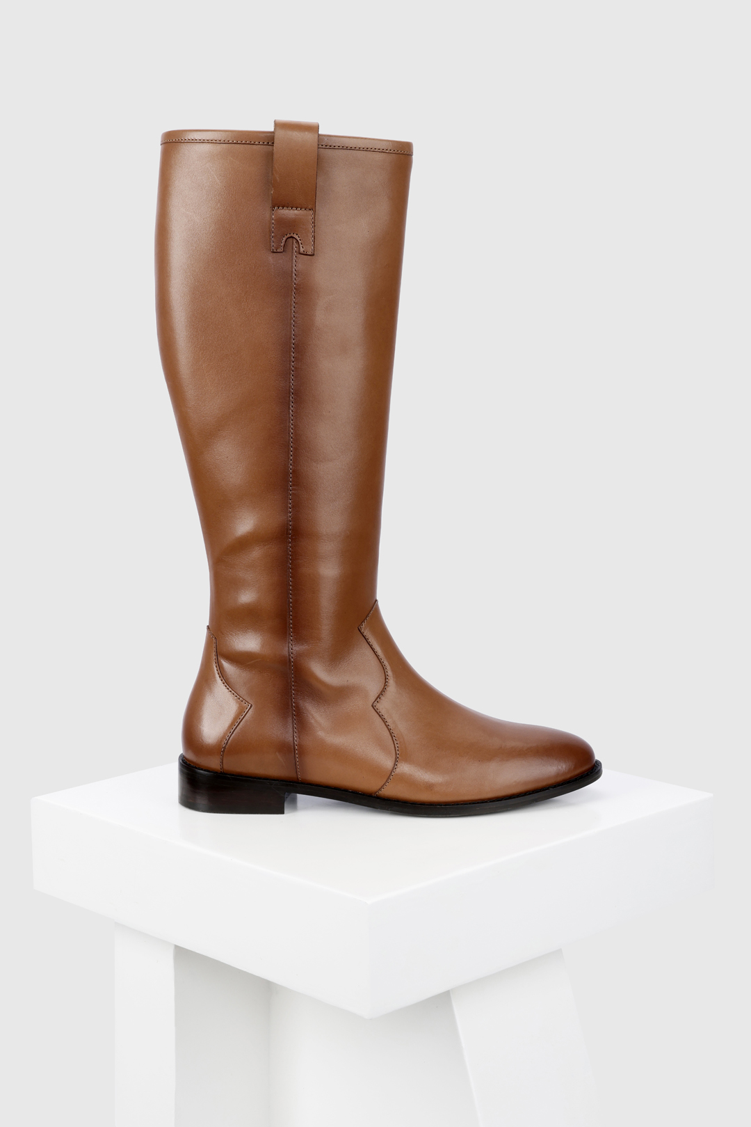 Asturias is a long boot with a low heel. This comfortable boot is a love letter to beautifully finished leather, with accents like loops on the topline and highlights along stitches and zips. All our boots are designed in Europe and manufactured using premium leather.