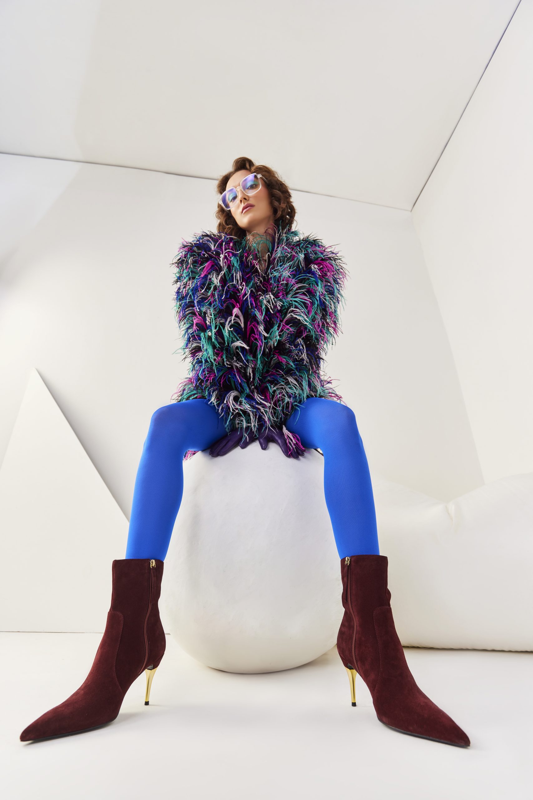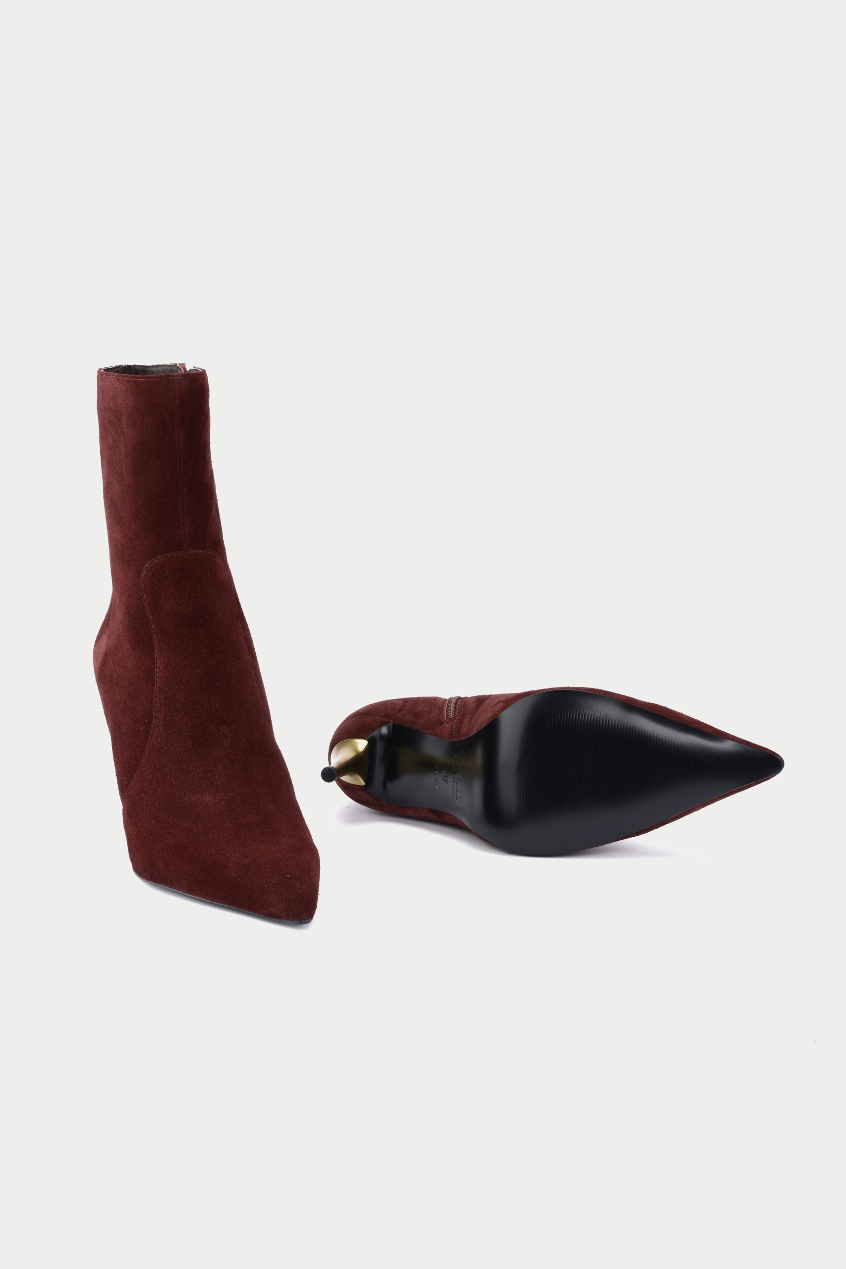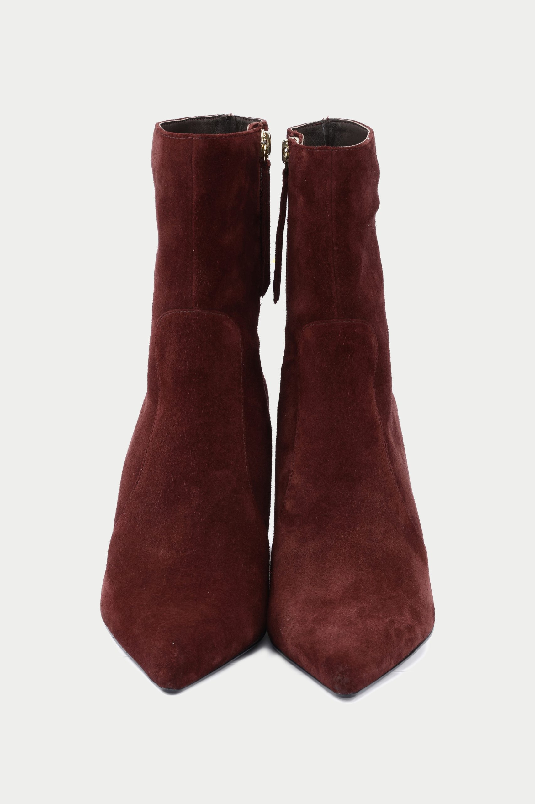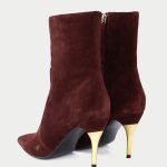 The Biella, a stylish and versatile ankle boot that effortlessly combines comfort and elegance. The rich burgundy suede upper adds a touch of sophistication, while the pointed toe and stiletto heel create a modern and feminine silhouette. The gold-toned heel adds a touch of luxury, making the Biella the perfect choice for elevating your winter wardrobe.