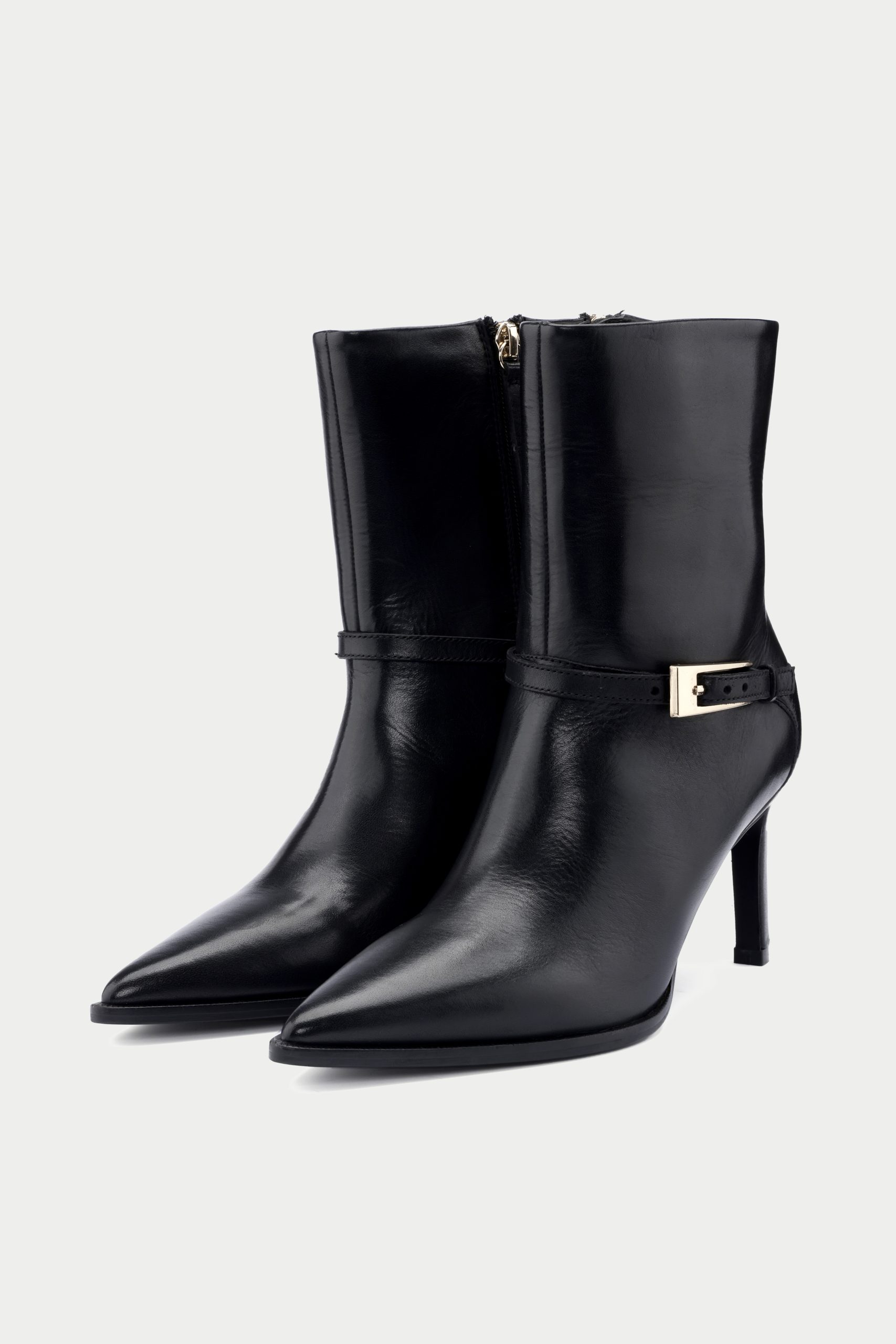 Embrace timeless elegance with the Oroh Florence Chic Ankle Boots. These chic boots feature a pointed toe, a delicate kitten heel, and a stylish metal buckle detail.
