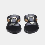Angela Flats is easily fashionable, and comes in a versatile tan or in classic black. With a stylish strap structure, a metallic buckle detail, and a supportive flat sole, these sandals are very comfortable and stylish, thus making it the ideal footwear to wear with jeans, skirt, or other casual dresses.