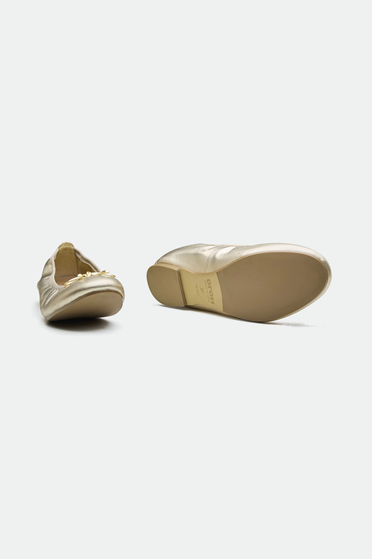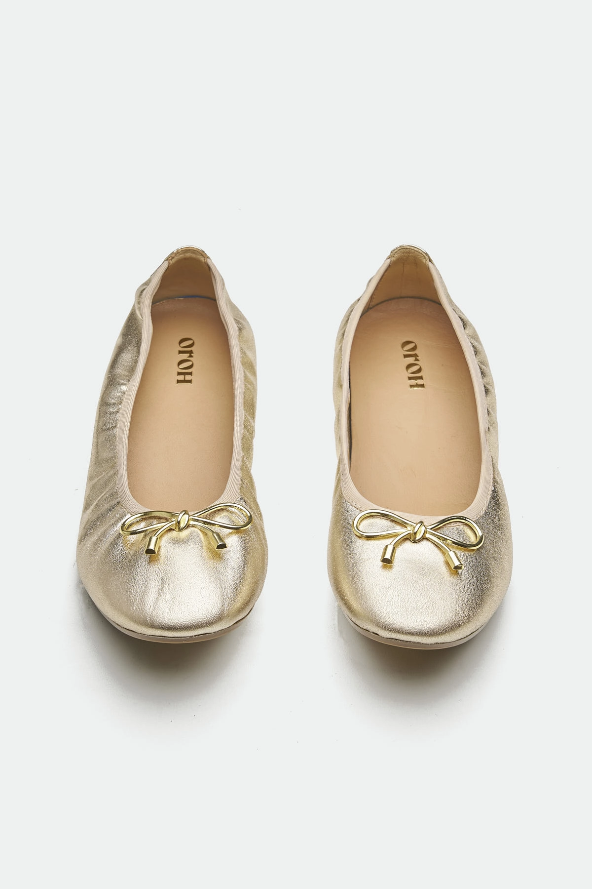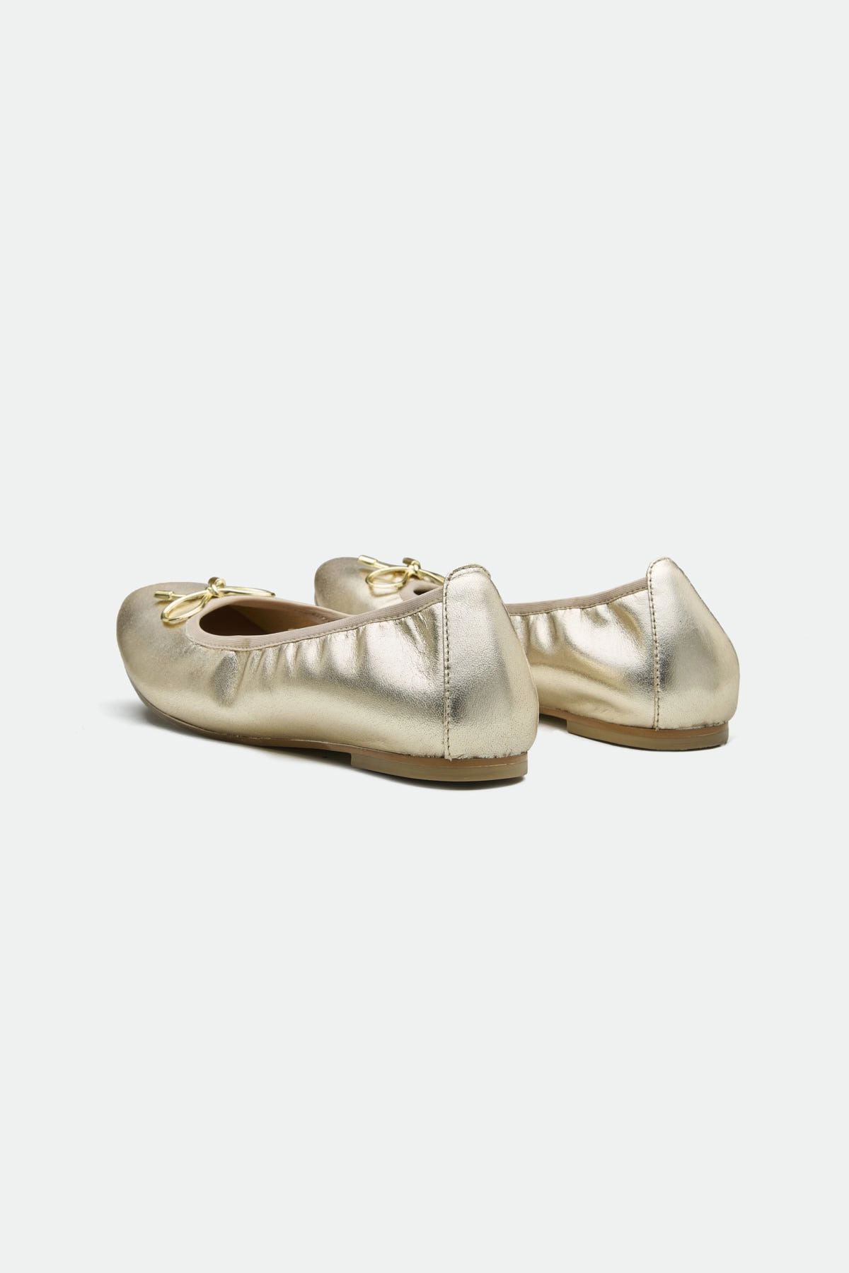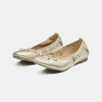 The Harrogate ballerina is a blend of comfort and subtle glamour. Crafted from soft, metallic foil leather, it features a delicate metal bow trim, adding a touch of refined sparkle. The flexible TPU sole ensures lightweight and comfortable wear, while the “extra soft” construction promises a gentle, cushioned feel. This ballerina offers effortless style for both casual and dressier occasions.