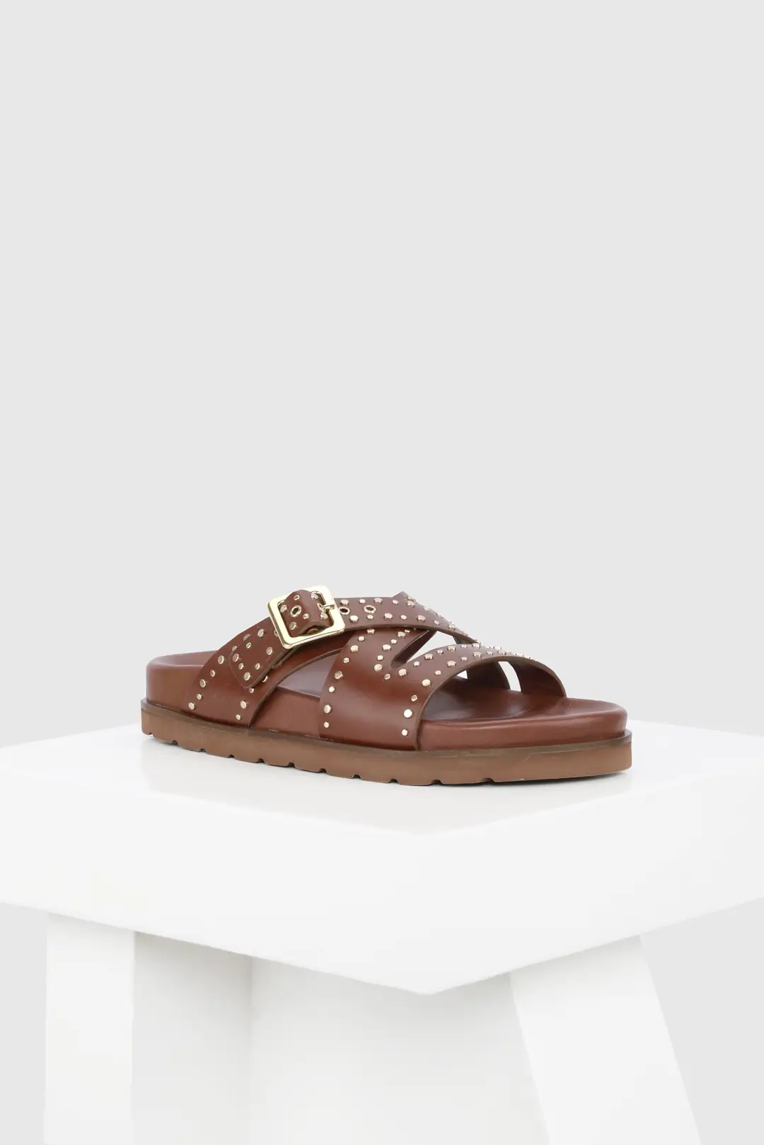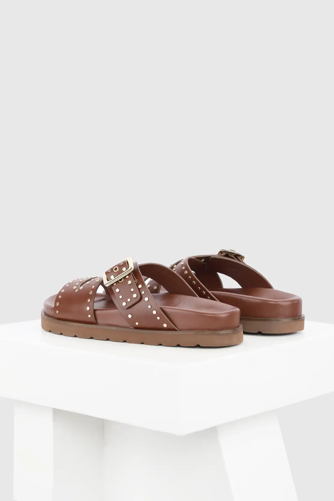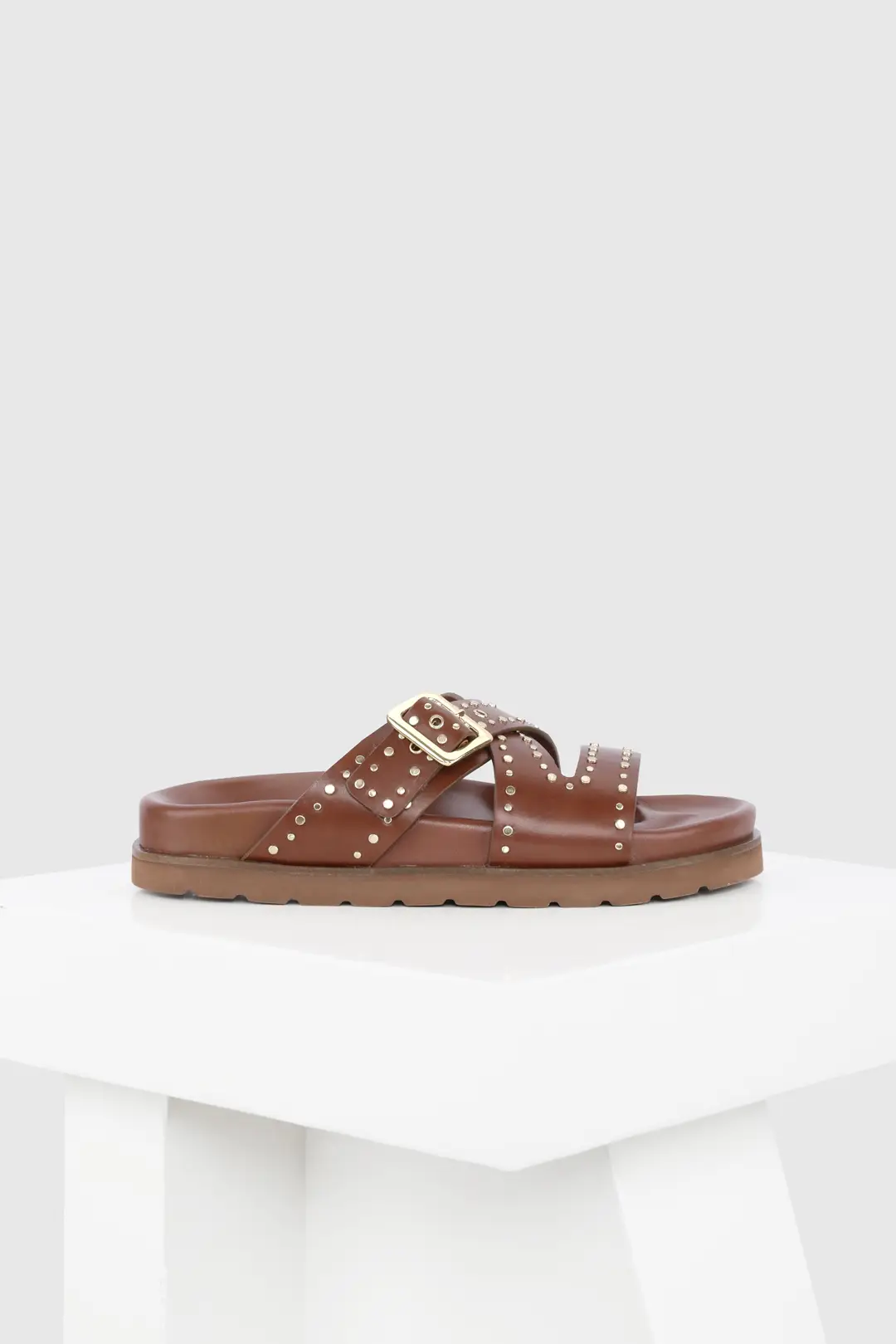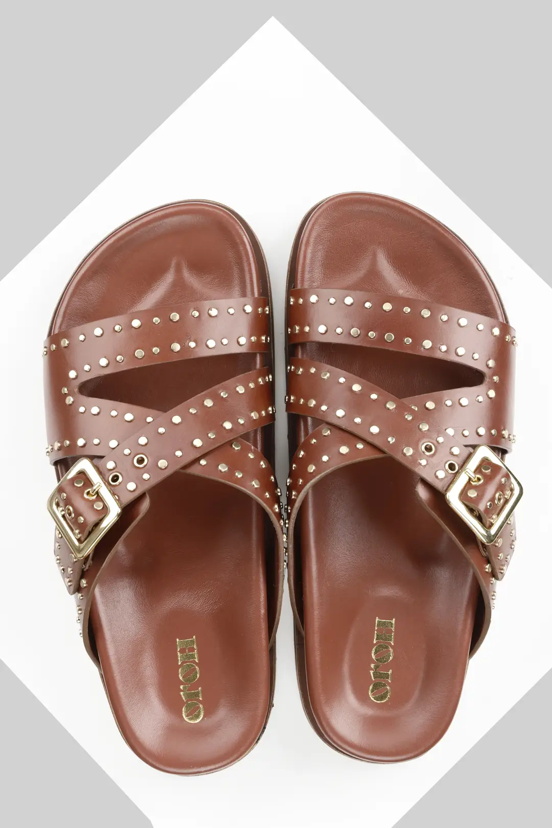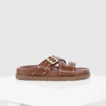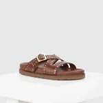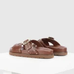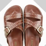 Novara is a flat sandal with a studded buckle upper. The lightweight sole the classic colours combine with the comfortable leather-covered footbed to make an everyday essential for your wardrobe. All our sandals are designed in Europe and manufactured using premium leather in India.