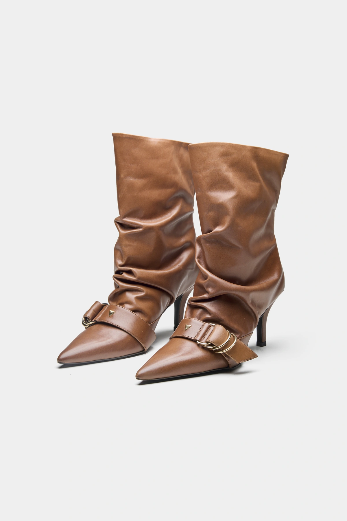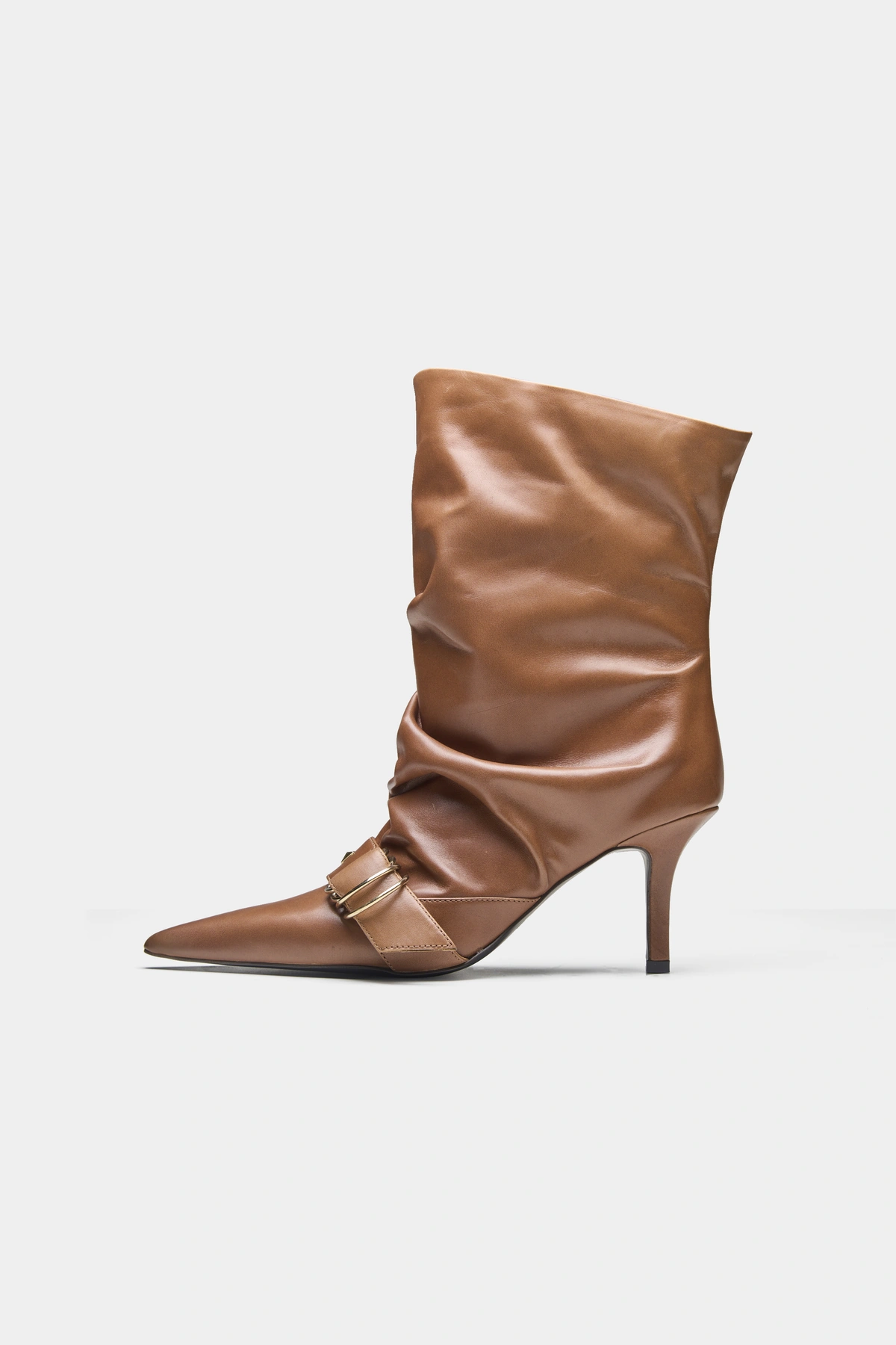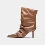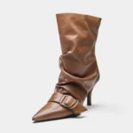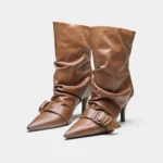 Stylish Pencil Heel Ankle Boots with Buckle Detail