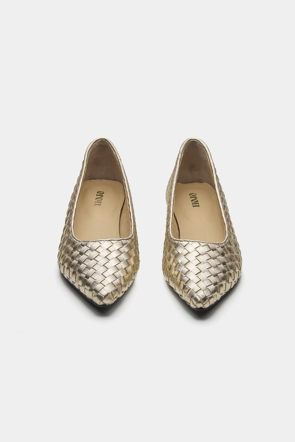 Elegant Woven Block Heel Pumps in Metallic Shades