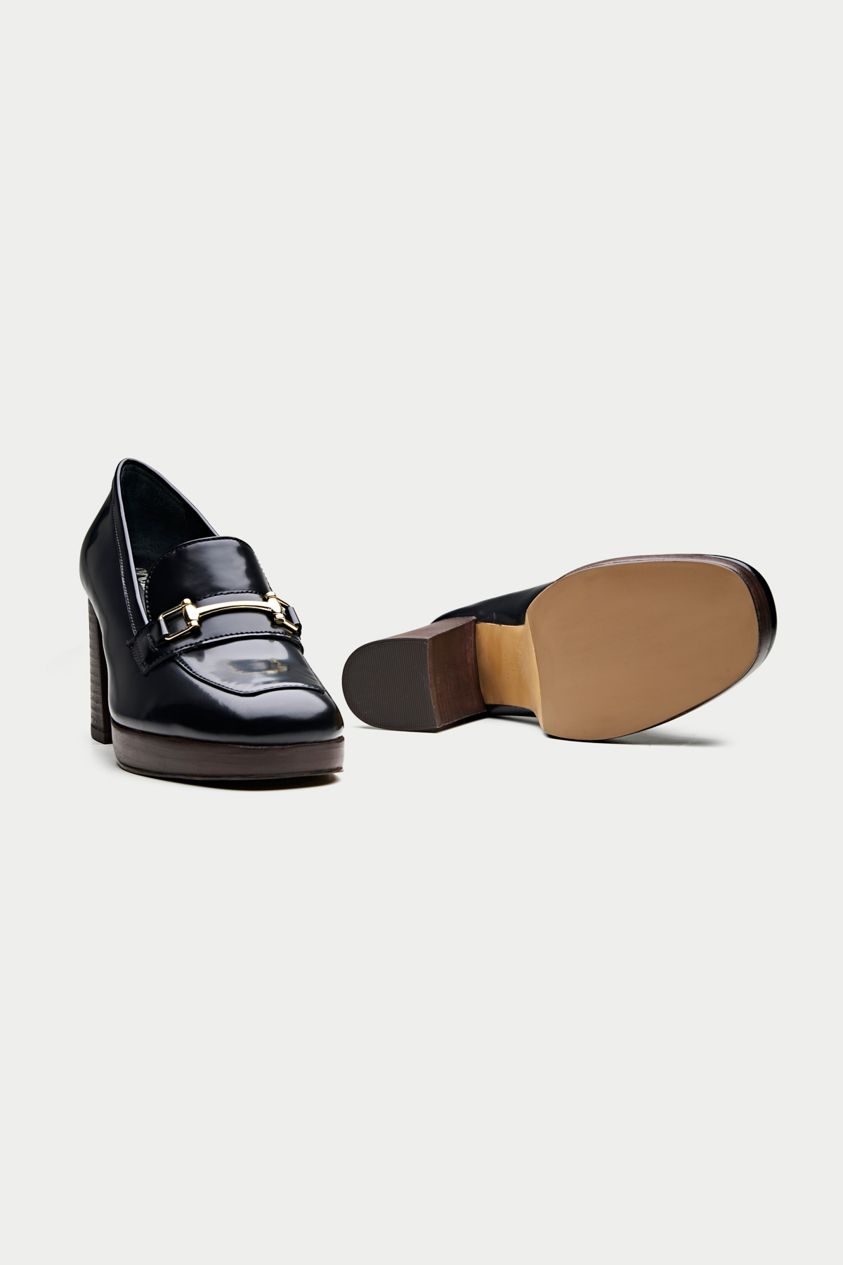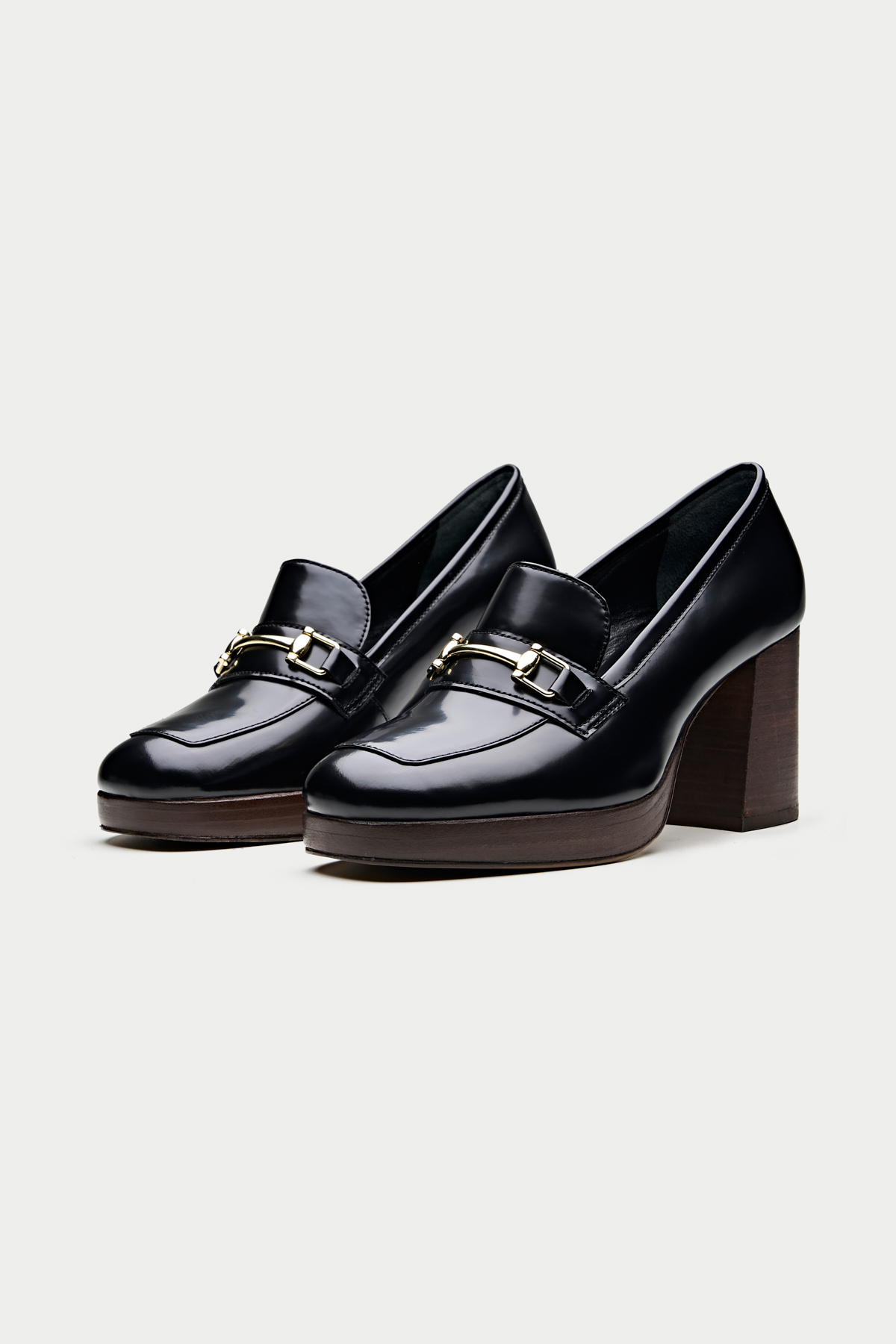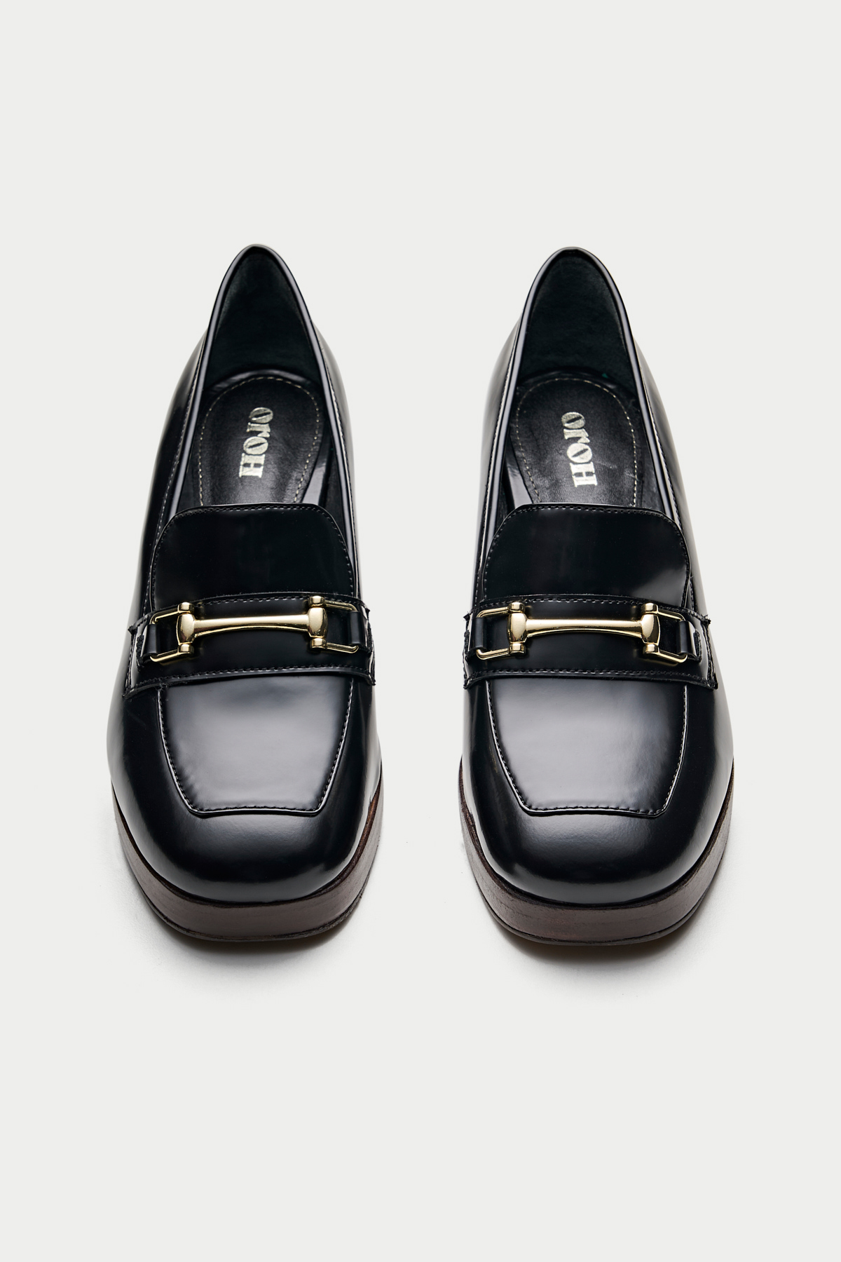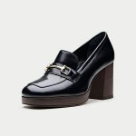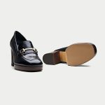 Step into style with the Oroh Benevento Loafer Pumps. These chic shoes combine the comfort of a loafer with the elegance of a pump. The sleek design, metal hardware, and chunky heel create a modern and stylish look.