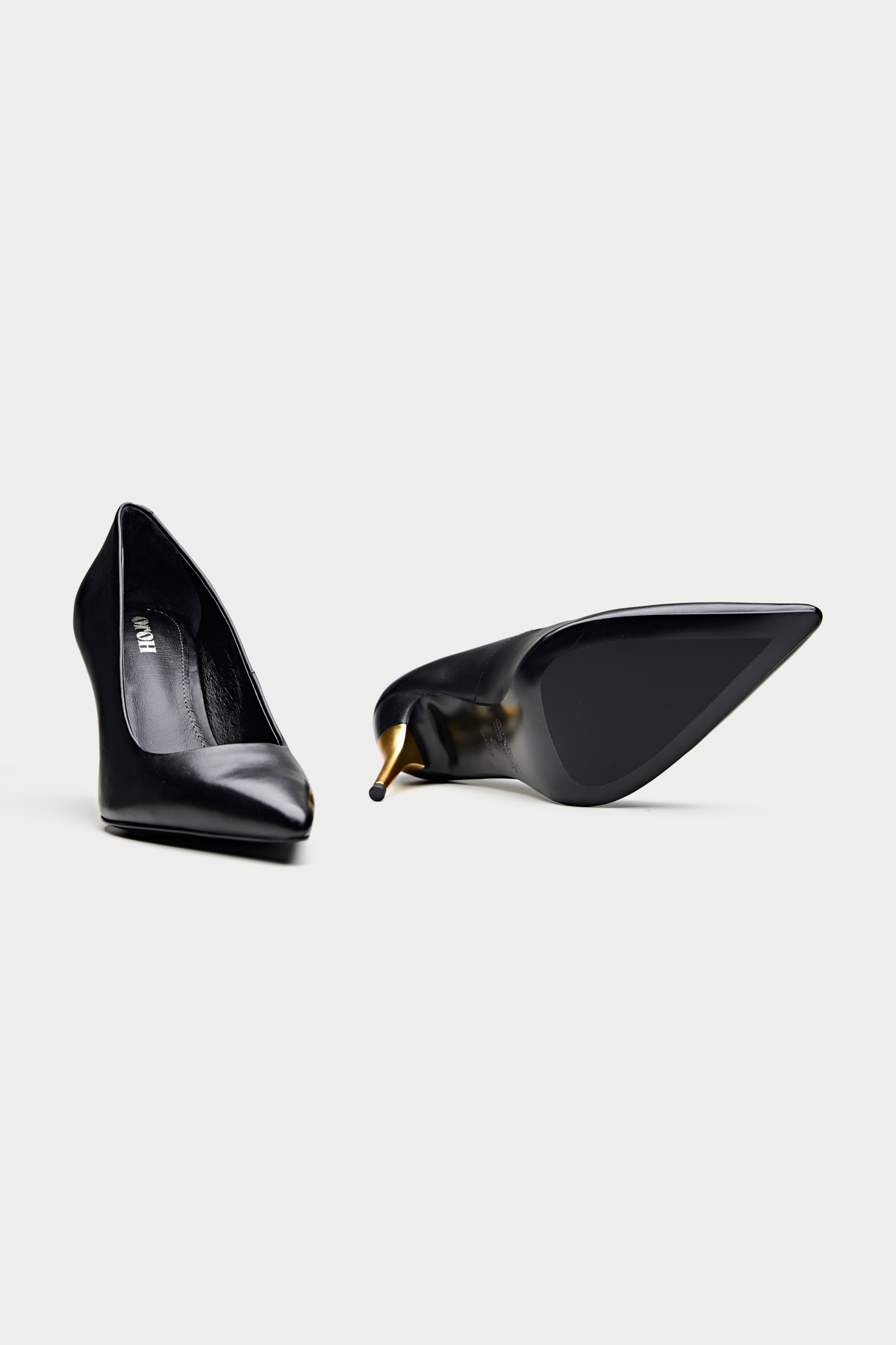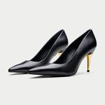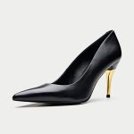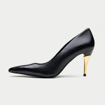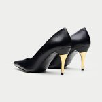 The Bolzano, a sophisticated and timeless addition to Oroh’s footwear collection. These classic pumps feature a sleek black leather upper and a pointed toe, exuding elegance and refinement. The standout feature is the striking gold-toned heel, adding a touch of contemporary flair. The Bolzano is perfect for elevating your evening attire or adding a touch of sophistication to your everyday style.
