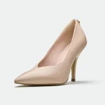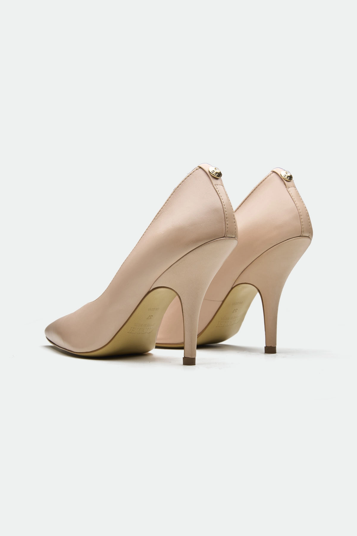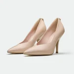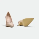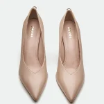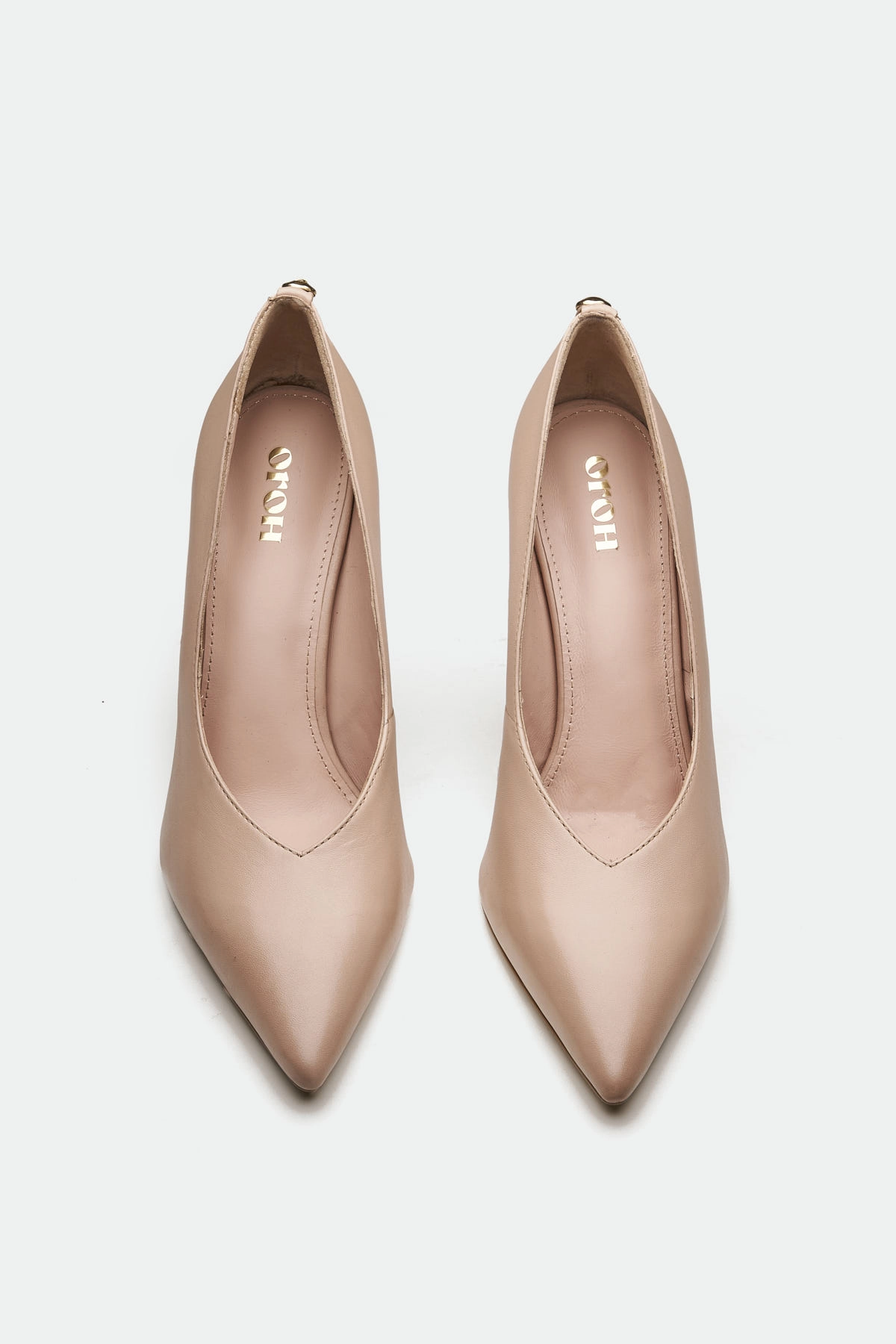 The Harlow pump, in a warm, muted rose leather, offers a sophisticated and versatile style. Its classic pointed-toe silhouette is complemented by a slender, sculpted heel. A subtle Oroh trim detail at the counter adds a touch of understated branding. The clean lines and smooth leather create a minimalist aesthetic, making it suitable for both professional and dressier occasions.