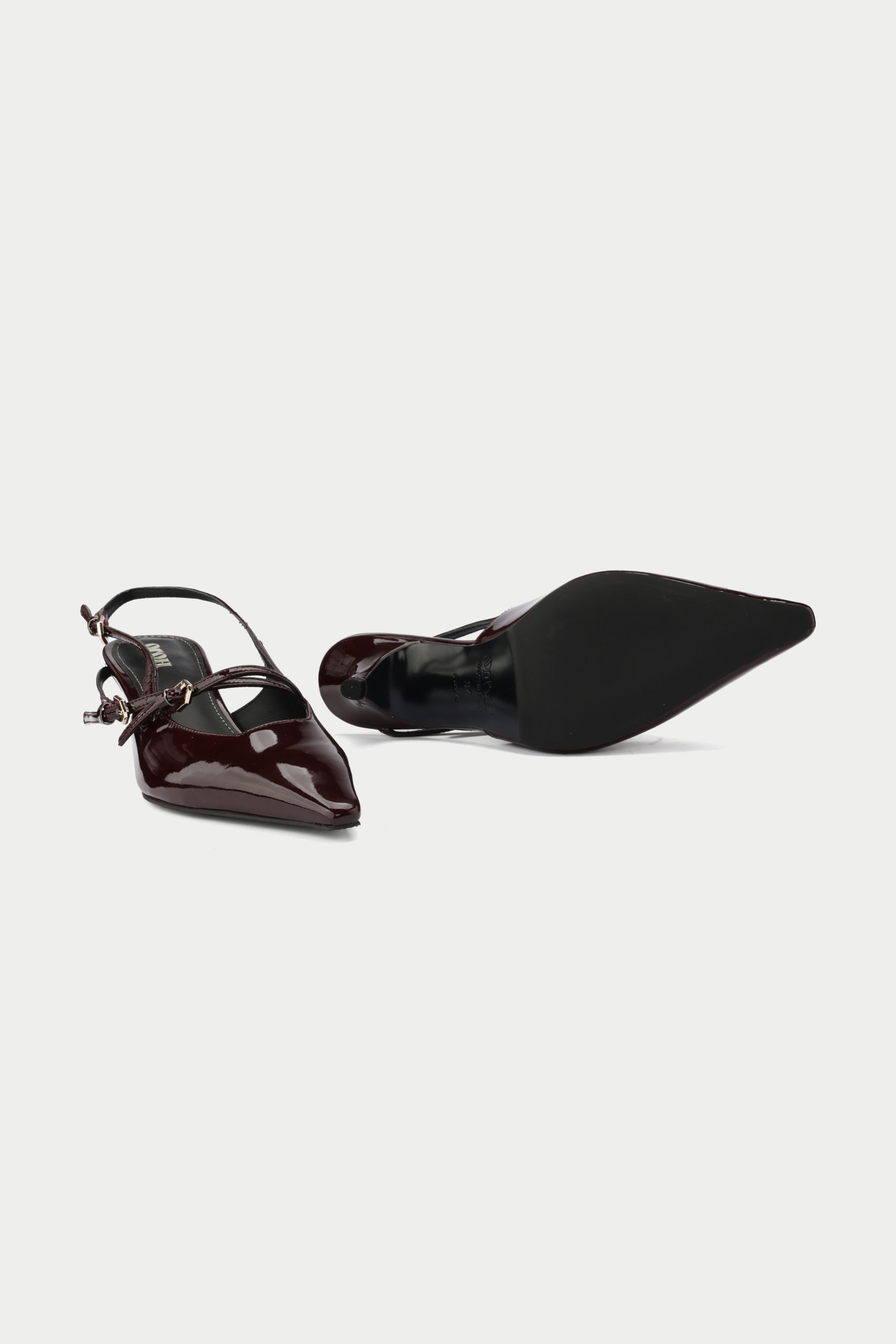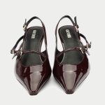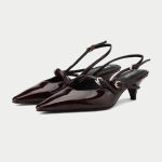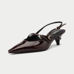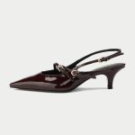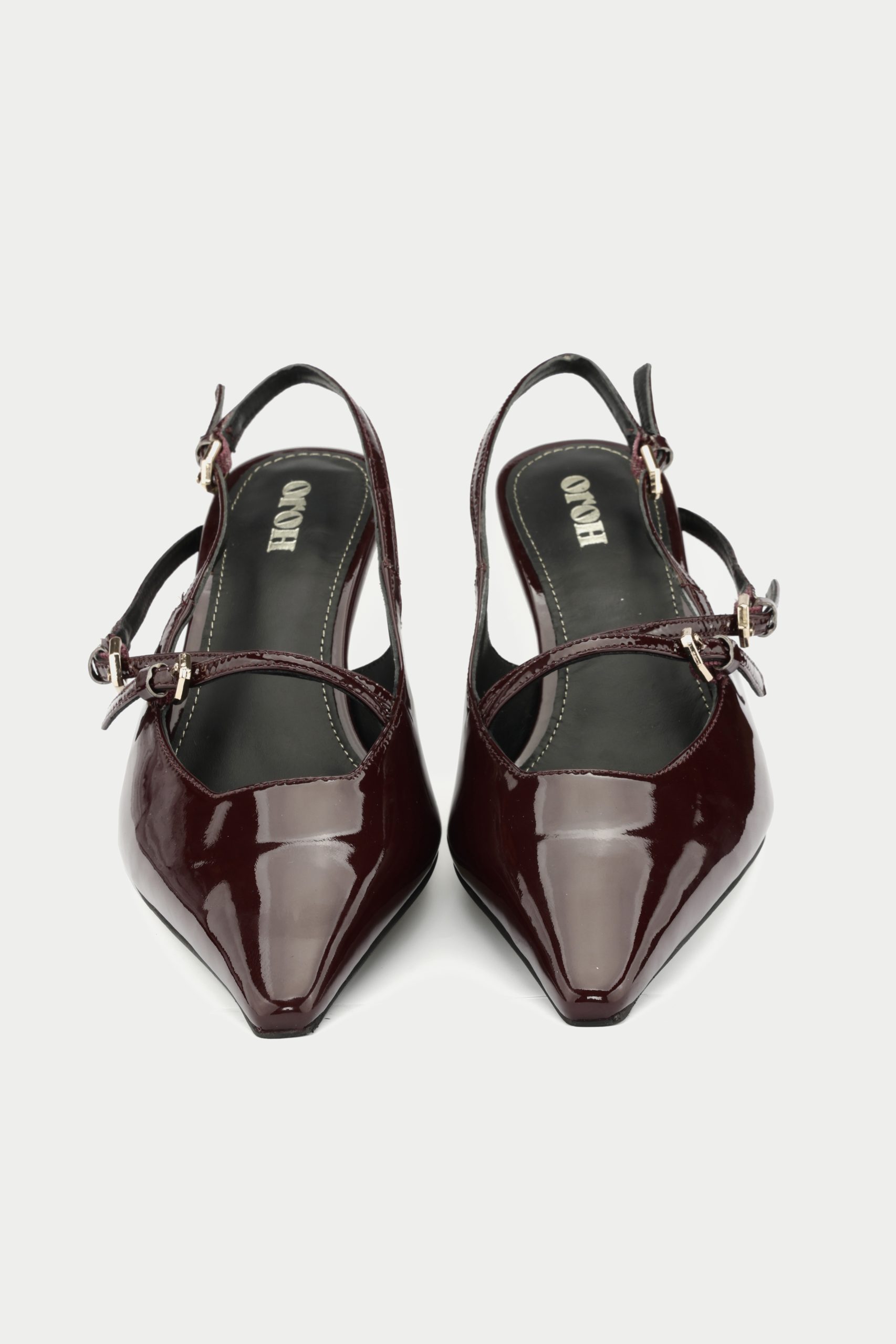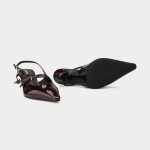 The Marsala, a captivating new addition to Oroh’s footwear collection. These slingback pumps feature a rich burgundy patent leather upper and a classic kitten heel, exuding timeless elegance. The criss-crossed straps add a touch of intrigue, while the pointed toe elongates the leg. The Marsala is perfect for elevating your evening attire or adding a touch of sophistication to your everyday style.