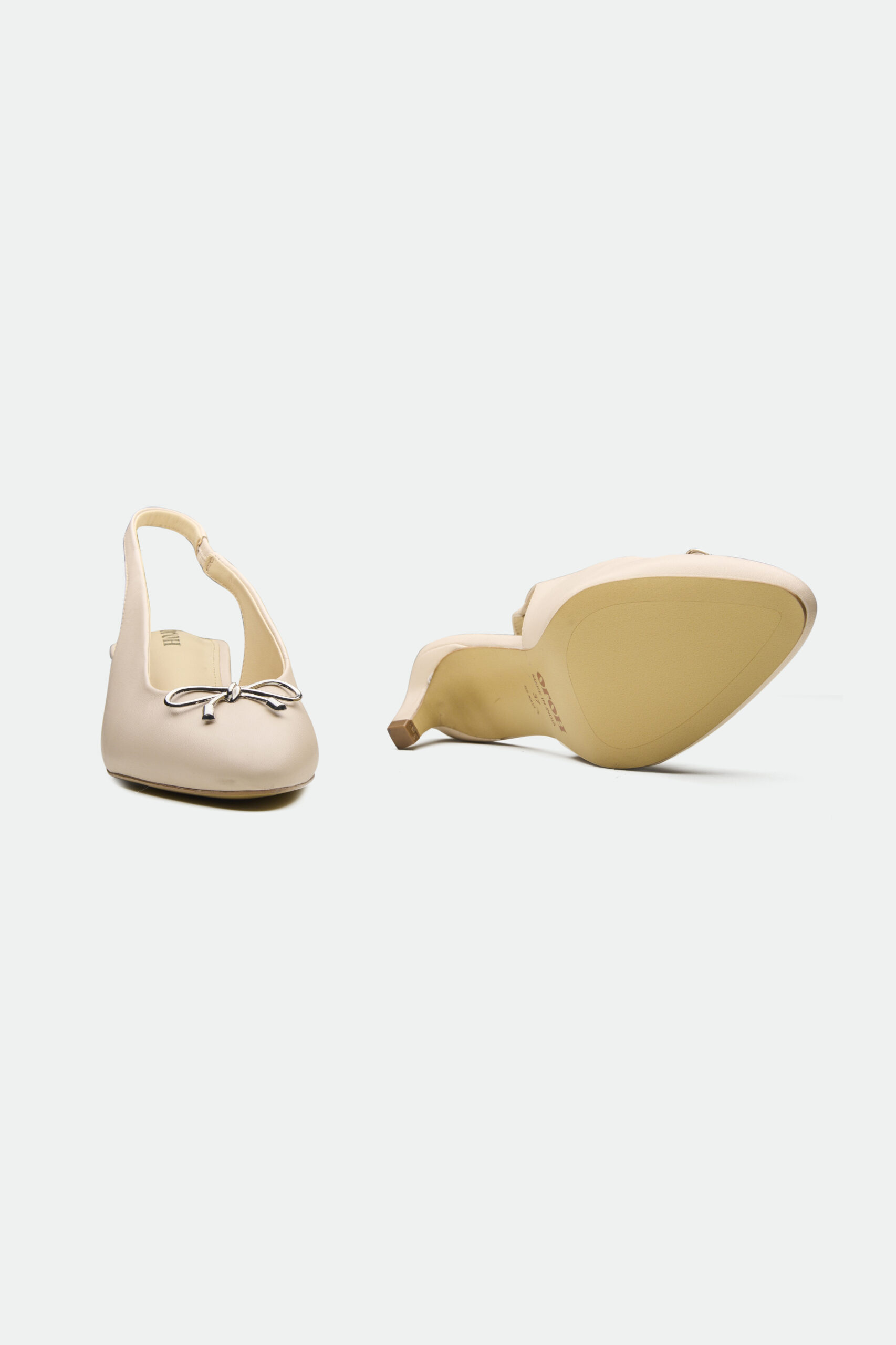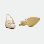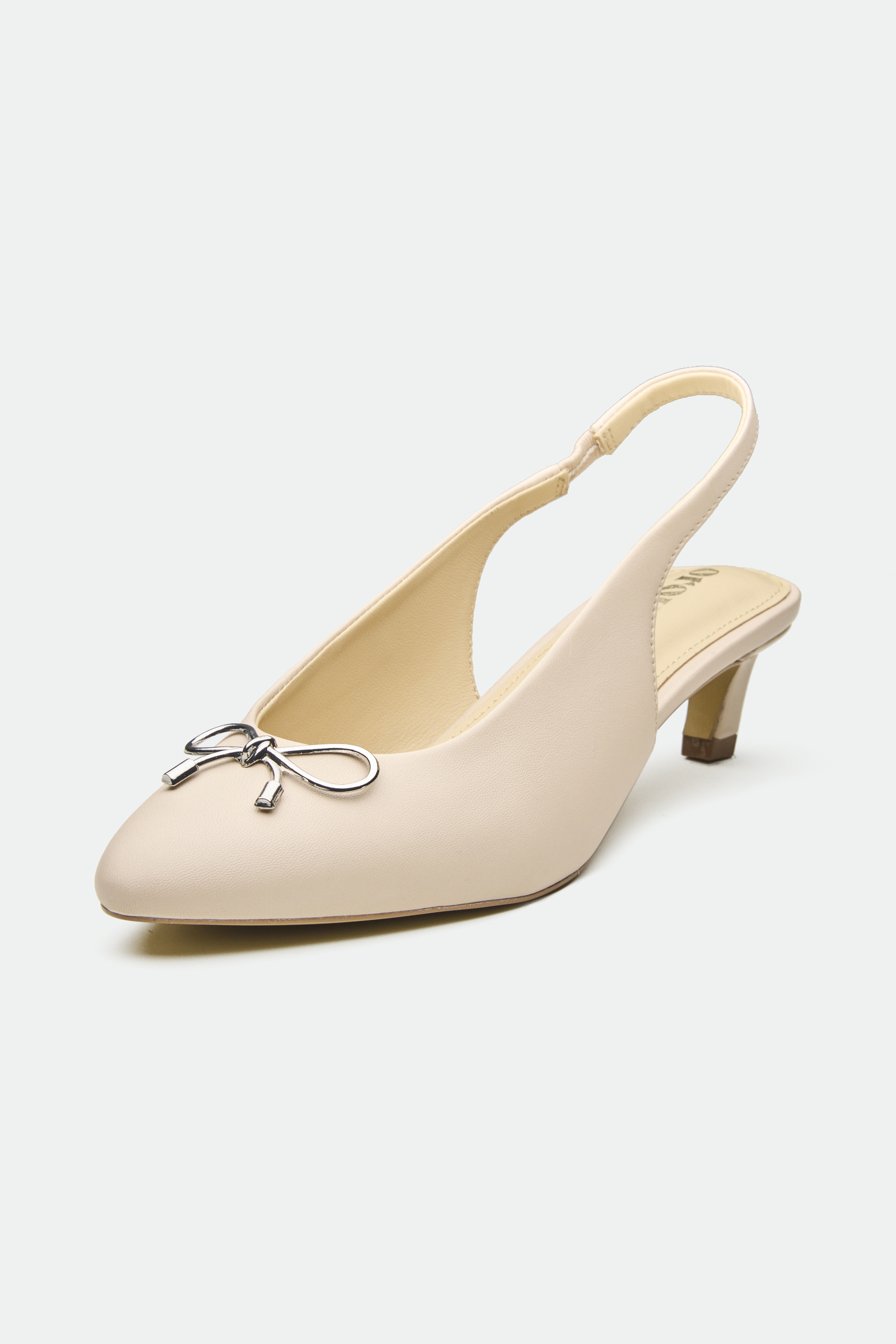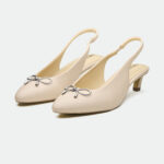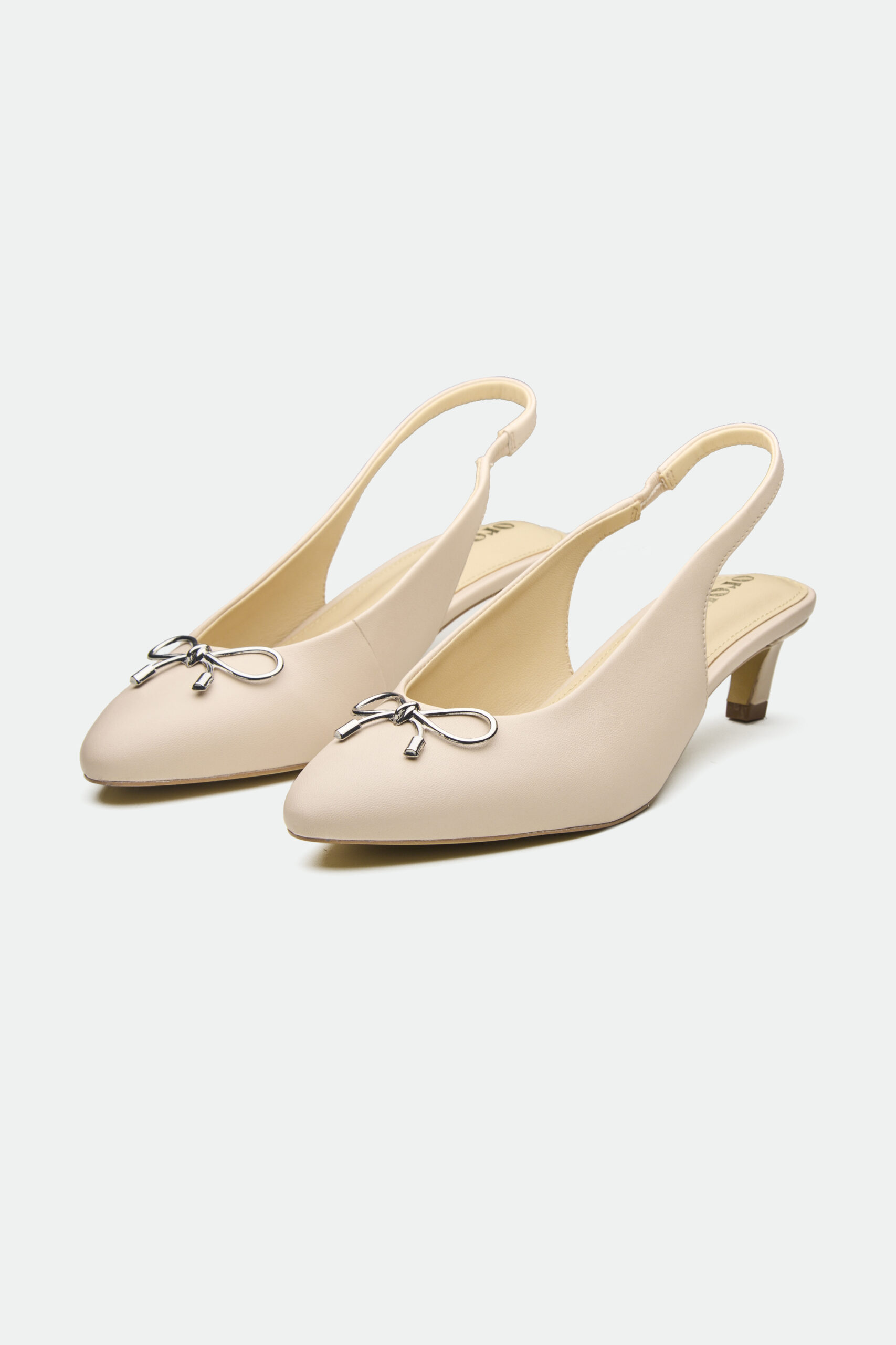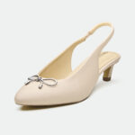 The Newport slingback, in a captivating metallic foil leather, offers a modern take on classic elegance. The delicate bow detail, crafted from polished metal, adds a touch of feminine charm. The low, slender kitten heel provides a comfortable lift, perfect for both daytime sophistication and evening allure. A thin ankle strap with a buckle closure ensures a secure and adjustable fit.