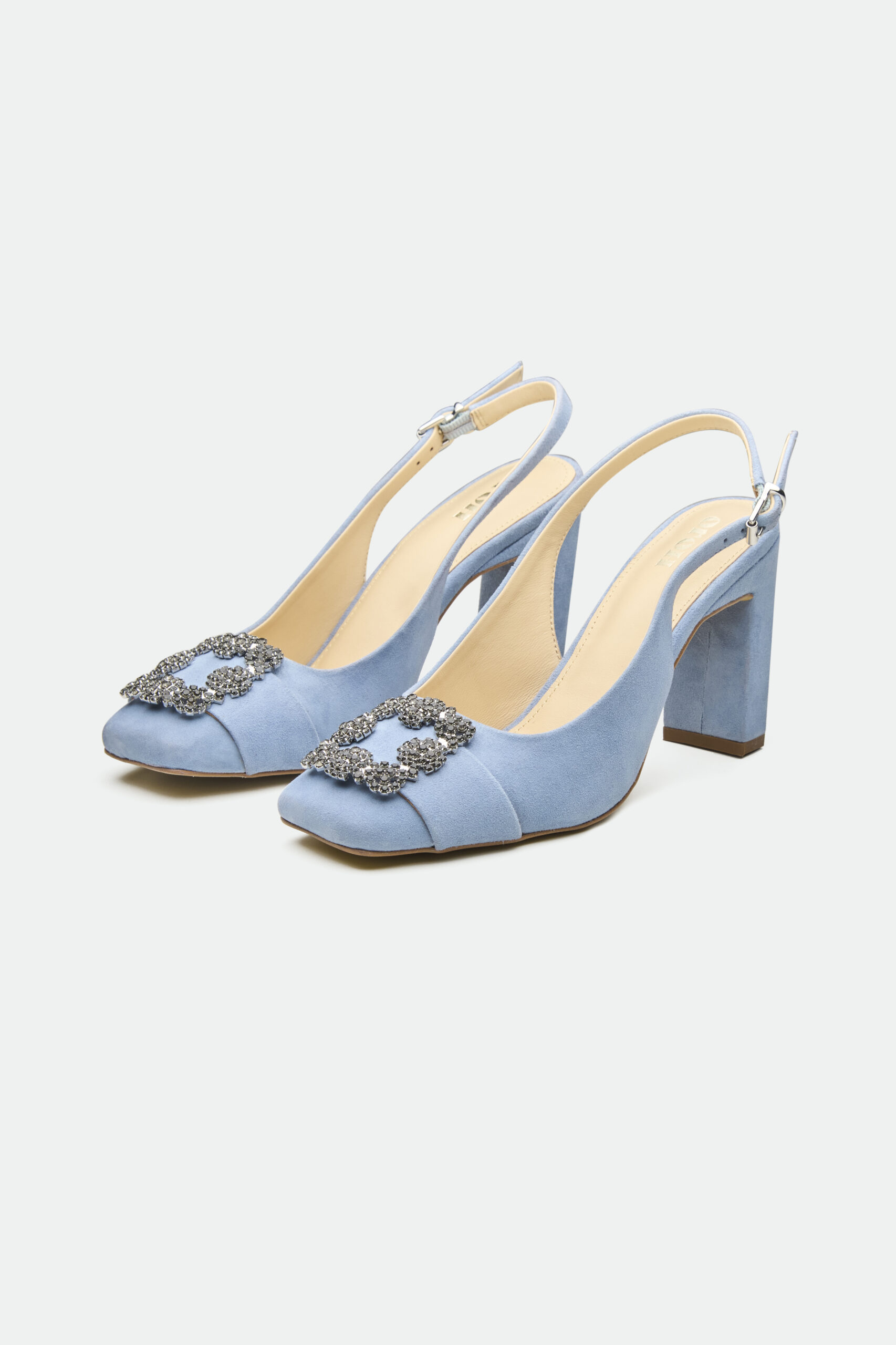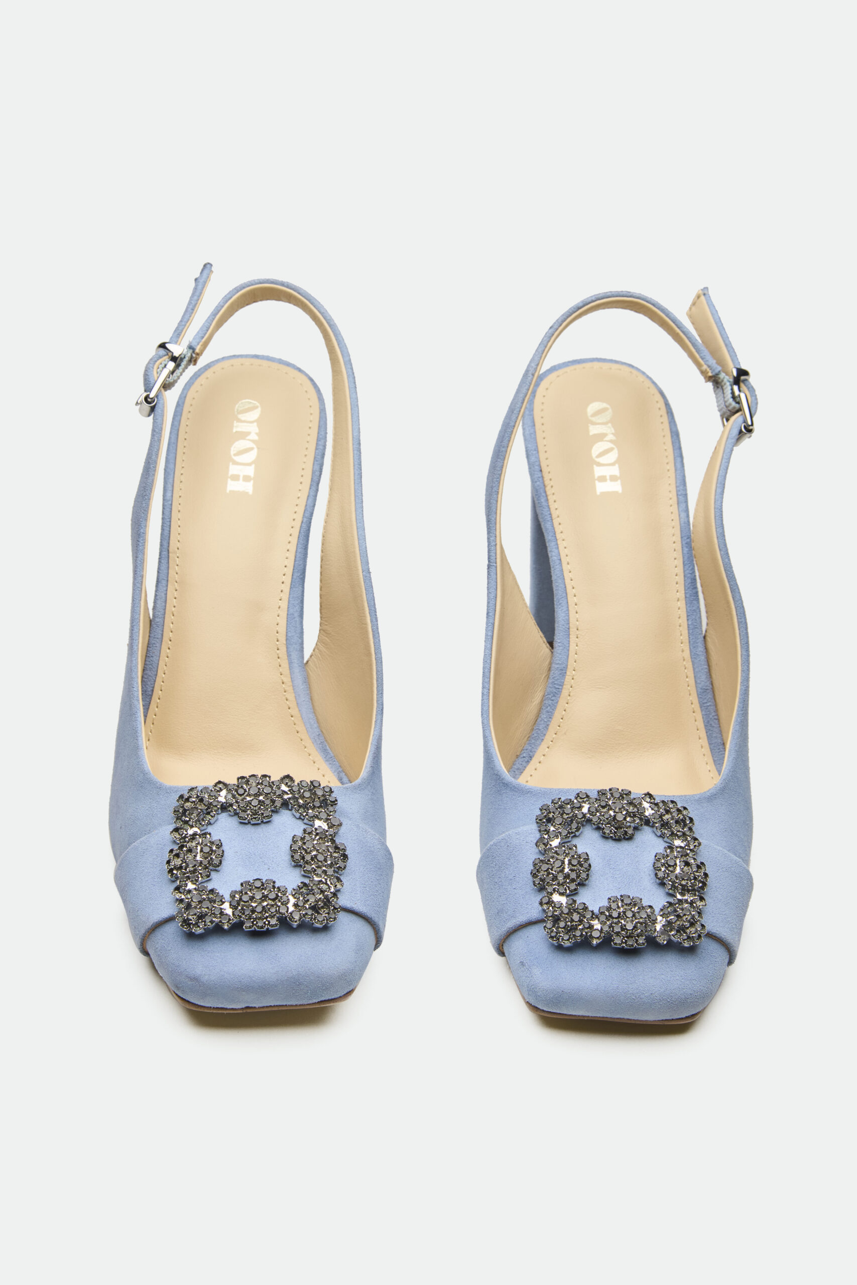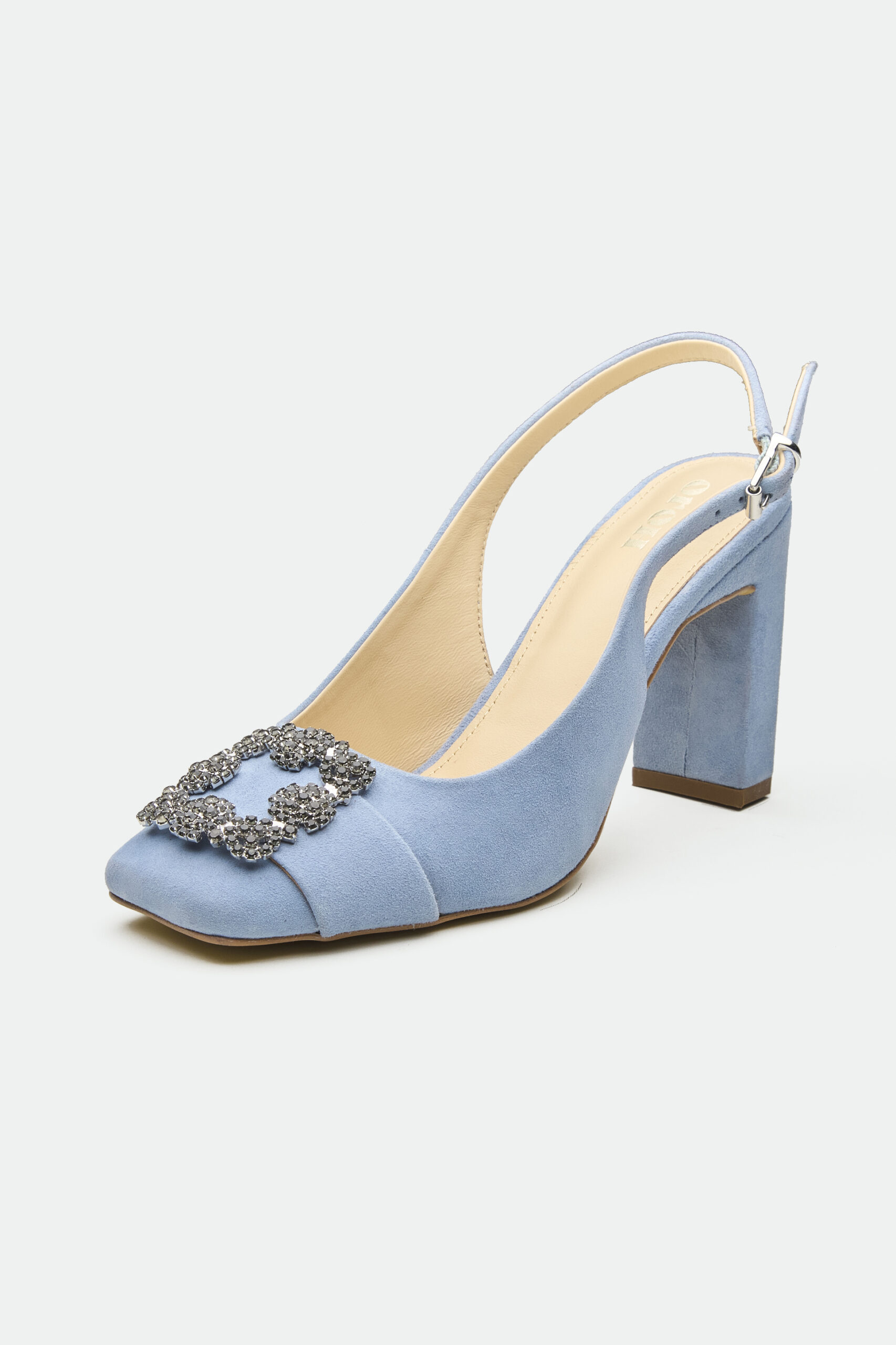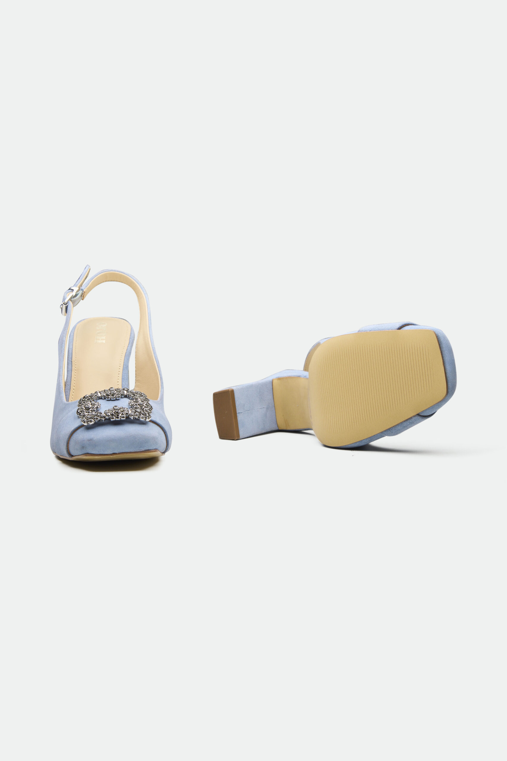 The Sugilite is a high heeled square toe sandal. The toe shape, the sleek heel, and the strap with a trim over your toes all combine to make this a style statement. All our shoes are designed in Europe and manufactured using premium materials in India.