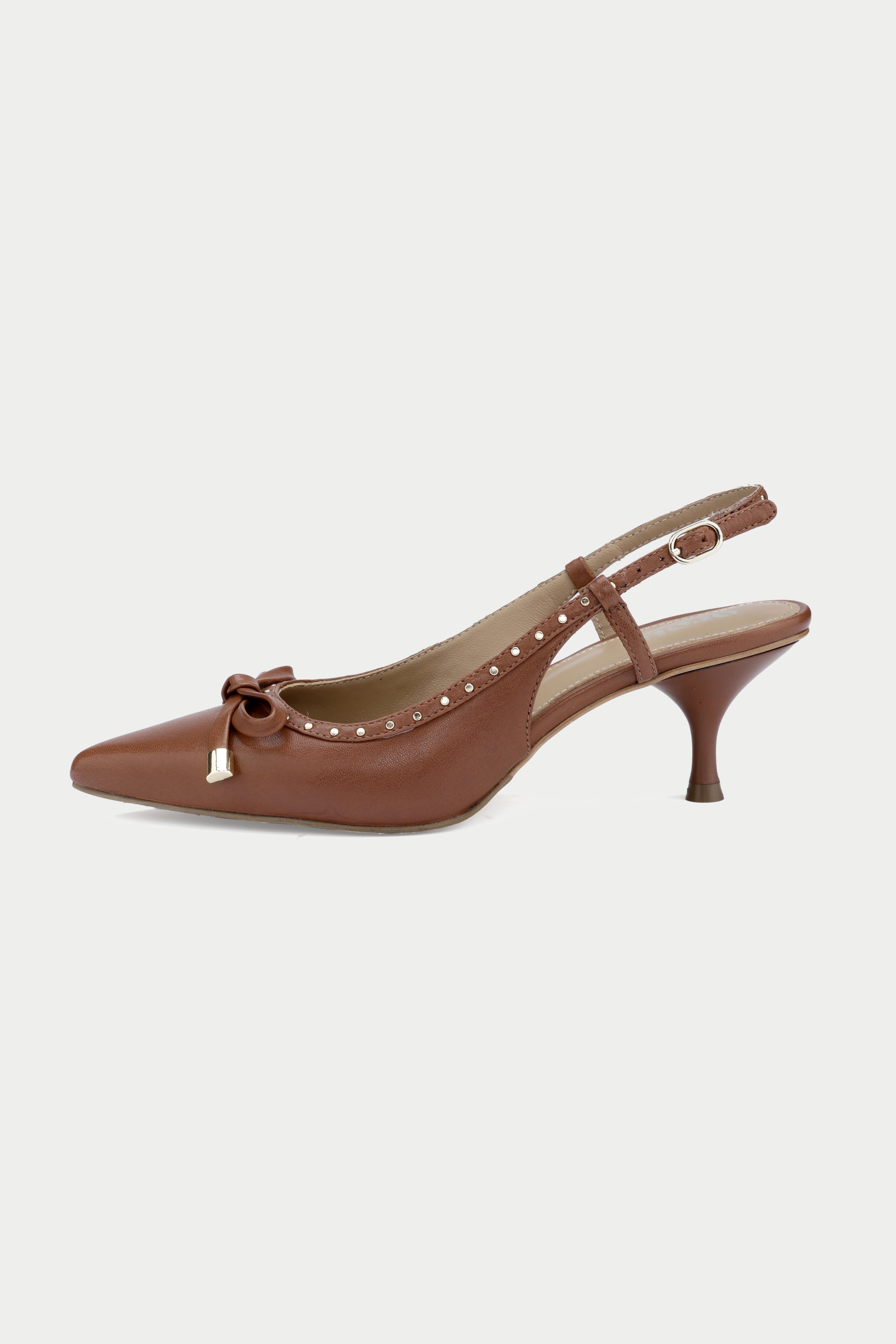 Embrace timeless elegance with the Oroh Venice Bow Slingback Pumps. These chic pumps feature a delicate bow detail, a pointed toe, and a sleek kitten heel. The adjustable slingback strap ensures a perfect fit.