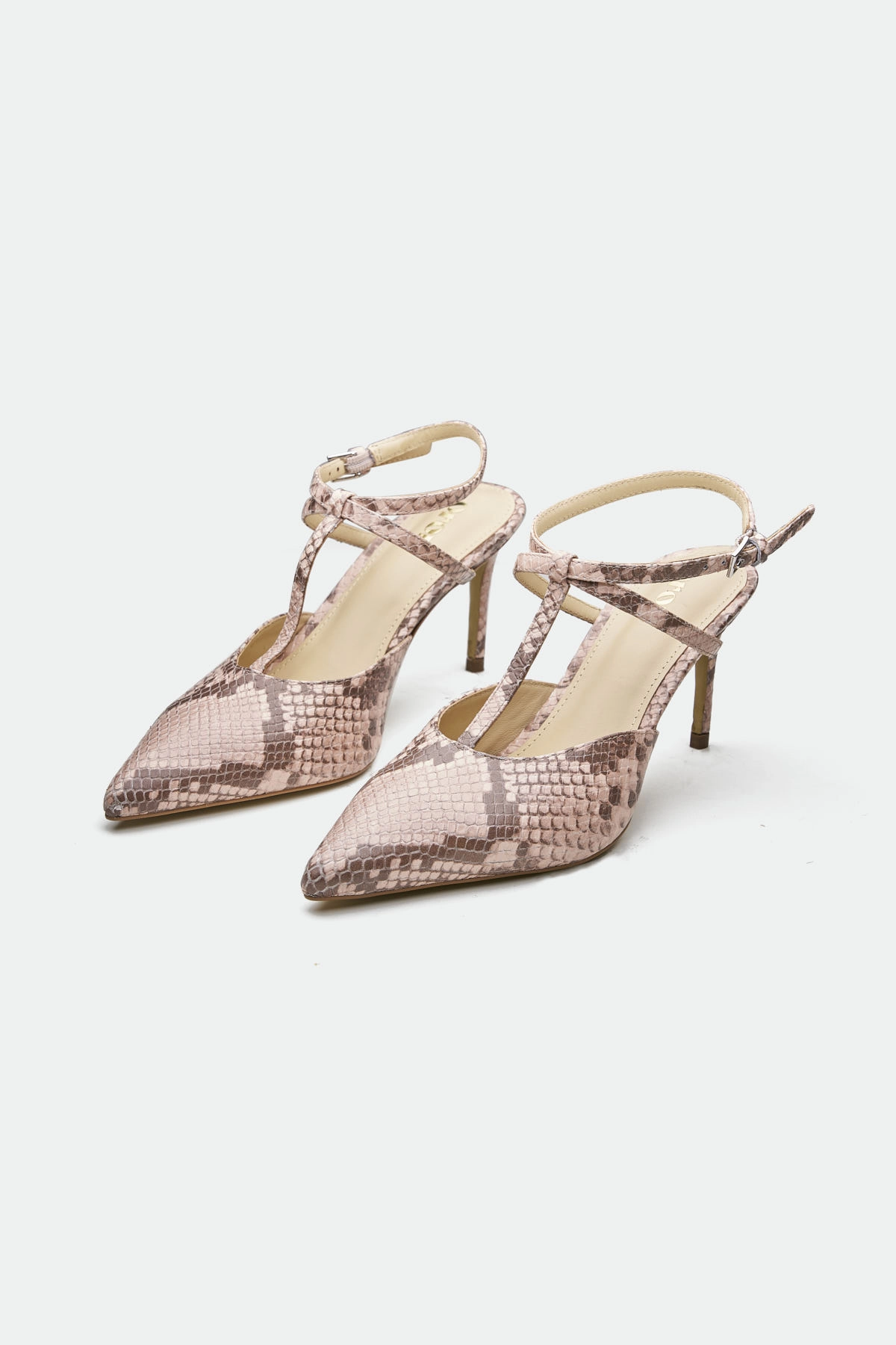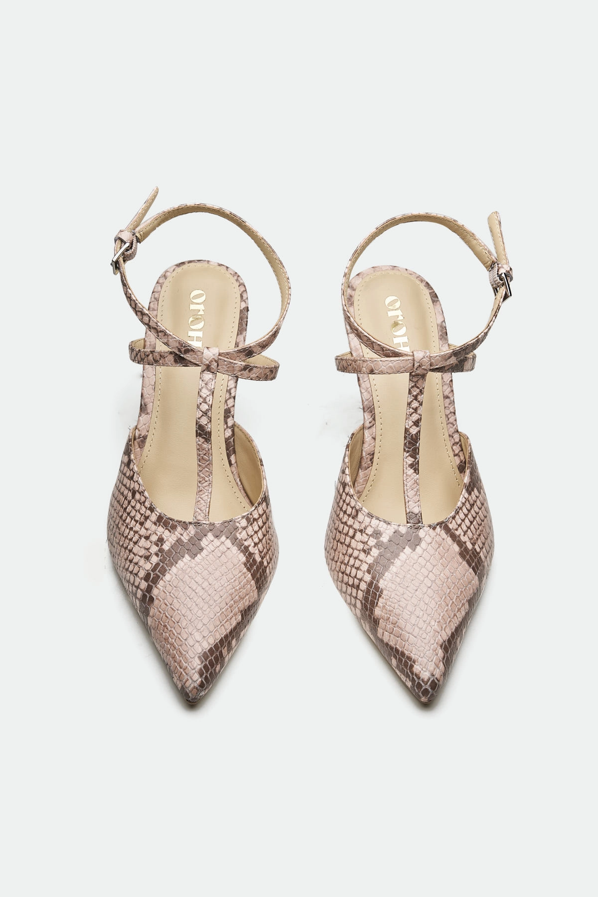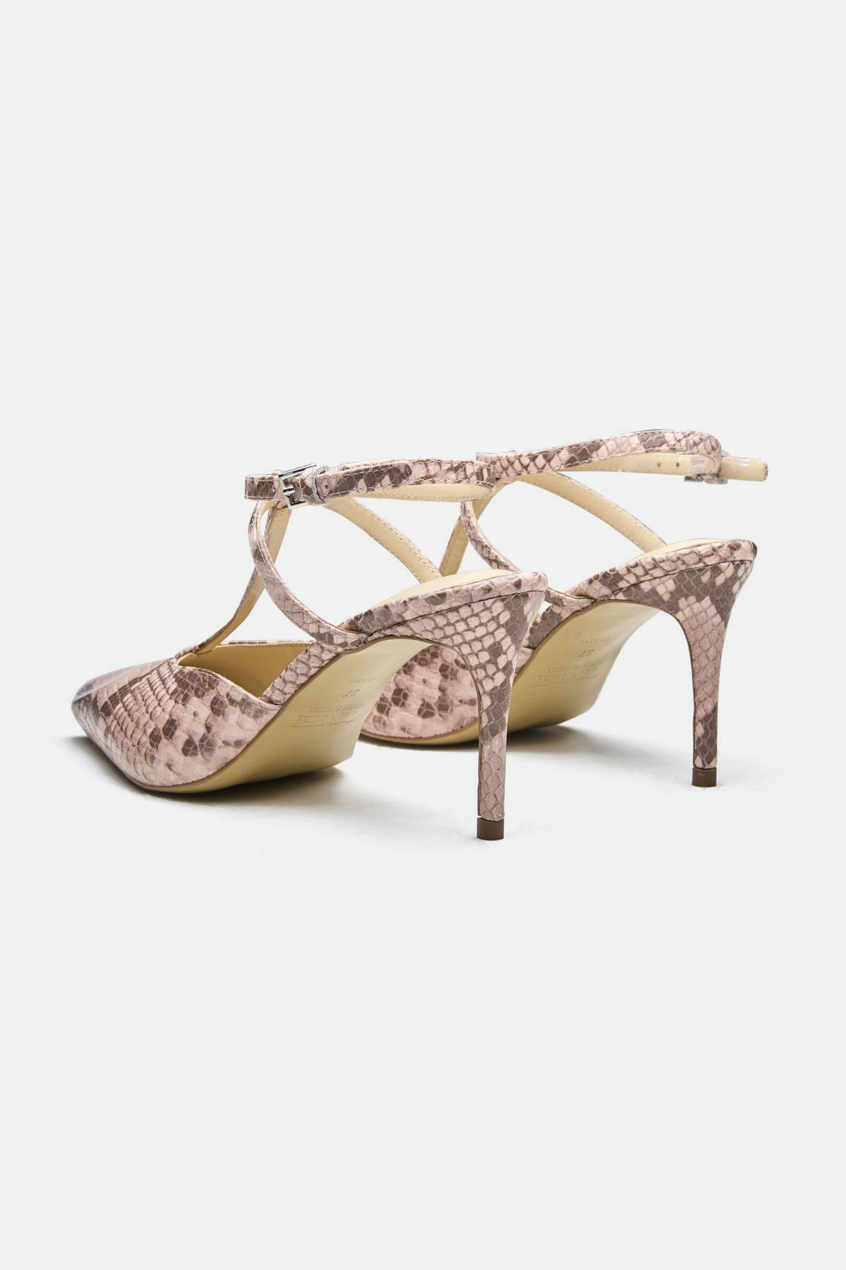 A leather sling back with delicate T-straps, and a small rectangular buckle define the York. Its pointed toe and stiletto heel offer a sleek, modern take on a classic silhouette.