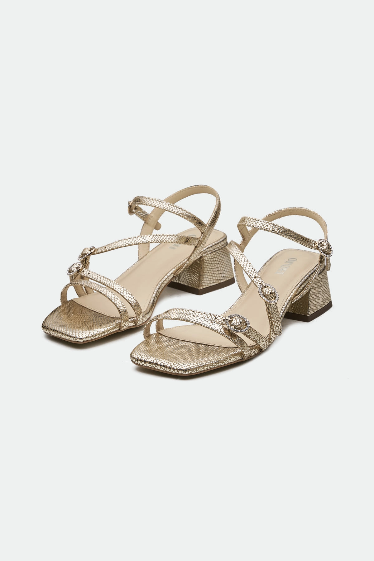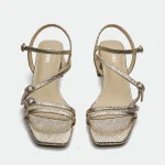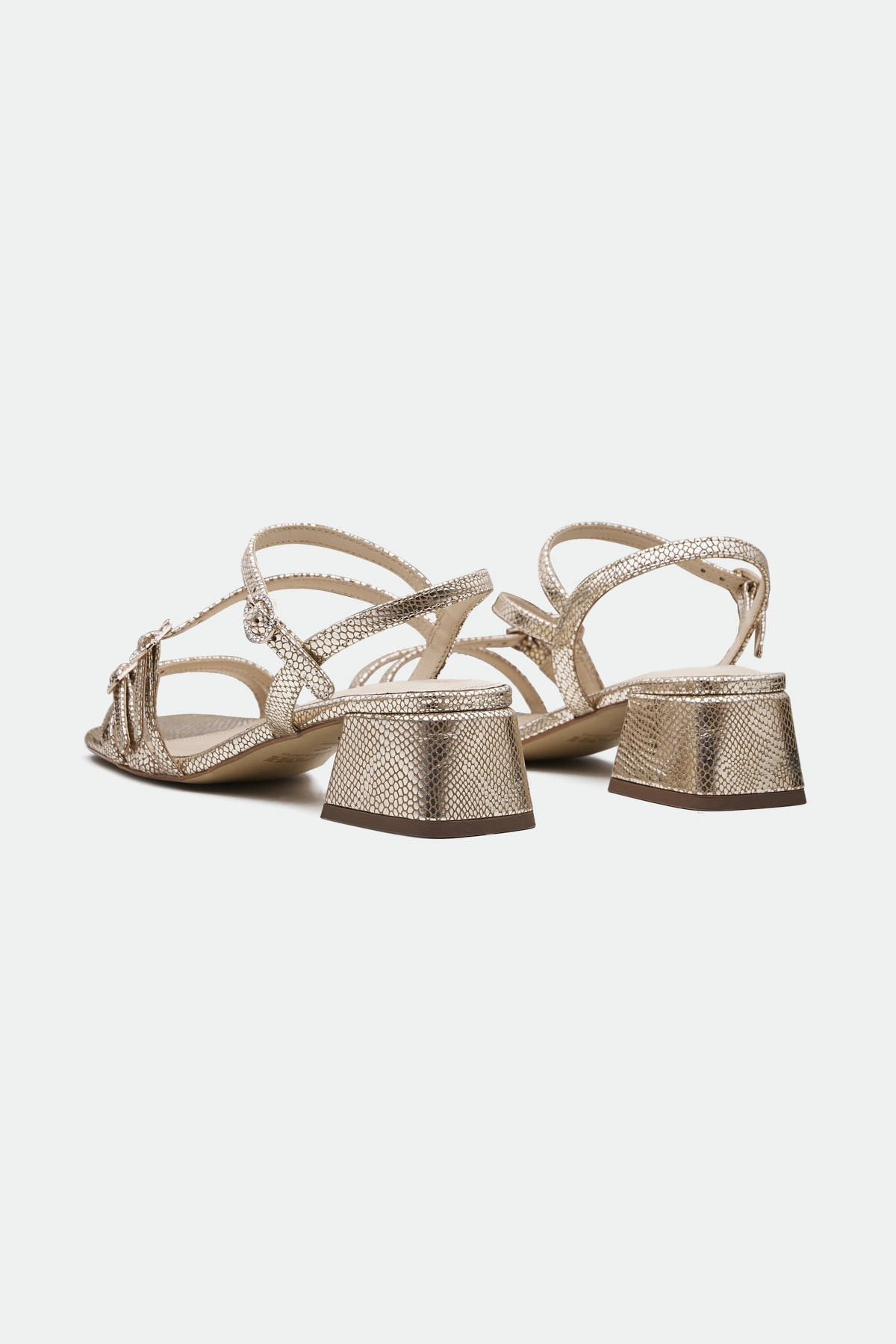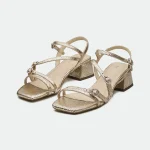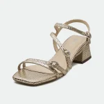 Shimmer with subtle elegance in Style Aberdeen, a sophisticated strappy sandal crafted to turn heads. Featuring a series of delicate straps adorned with circular decorative buckle accents and set on a low block heel, this open-toe style blends contemporary charm with timeless wearability. The squared toe adds a modern touch, while the supportive design ensures all-day comfort.