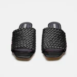 Aurora Sandals come in vibrant red and traditional black. They are both stylish and comfortable. These sandals have a textured woven design, an open toe, and a block heel that supports your foot. They are both stylish and comfortable, making them a great choice for wearing with jeans, skirts, or dresses.