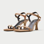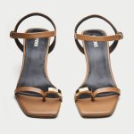 Elevate your style with these sleek and sophisticated strappy sandals. The elegant black patent leather and gold-toned hardware create a timeless and luxurious look. The comfortable heel height adds a touch of sophistication without compromising on comfort. The thong trim adds a modern twist to the classic design, making these sandals perfect for a variety of occasions. Whether you’re dressing up for a special event or adding a touch of glamour to your everyday look, these sandals are sure to impress.